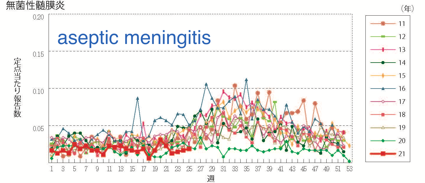 Mycoplasma pneumonia decreased from around April 2020. This has been a record low year after year since 2017; it was a very common disease until 2016.
